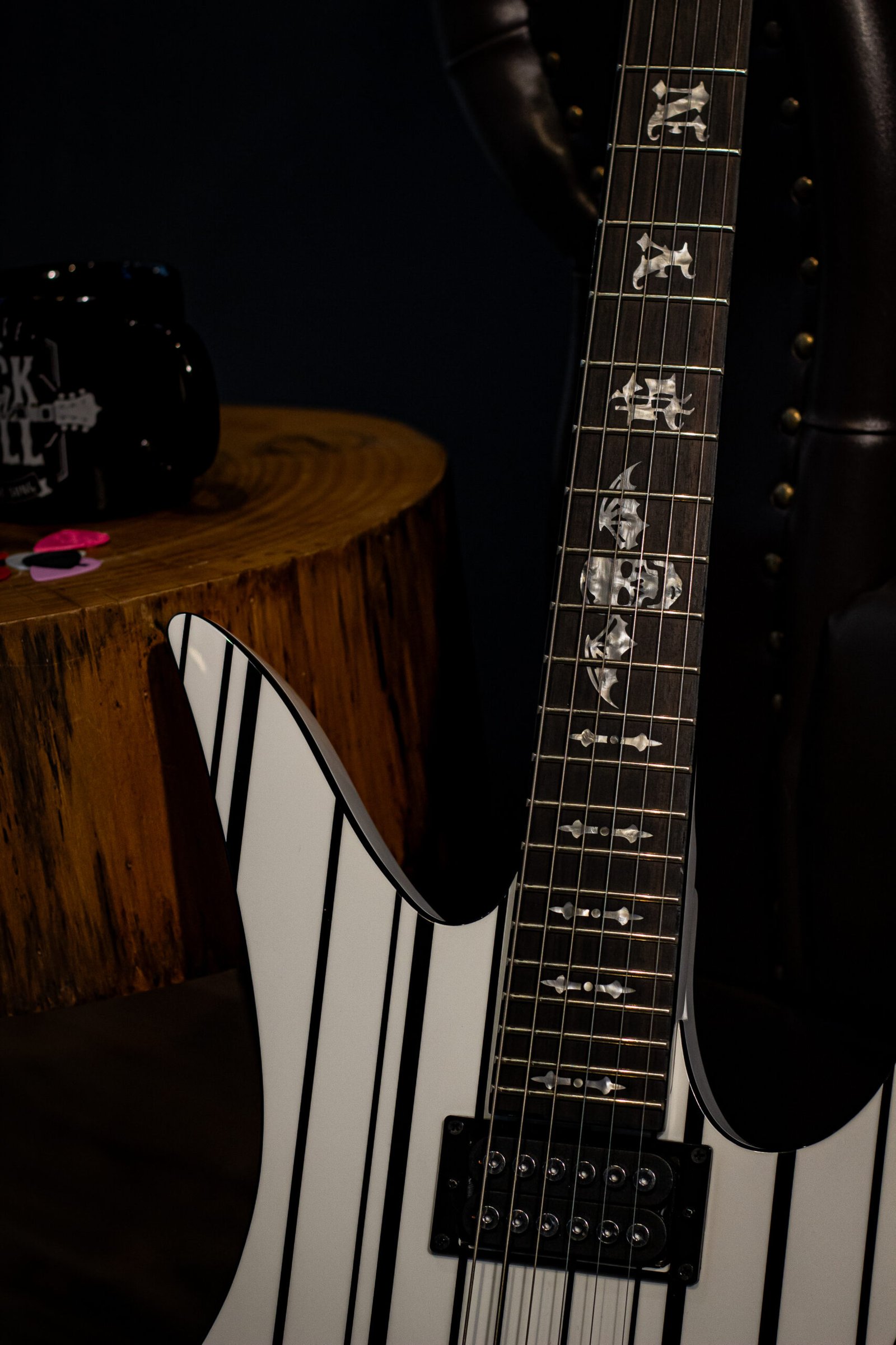 Marcações: Pearloid “Syn” com logo Death Bat na 12ª casa