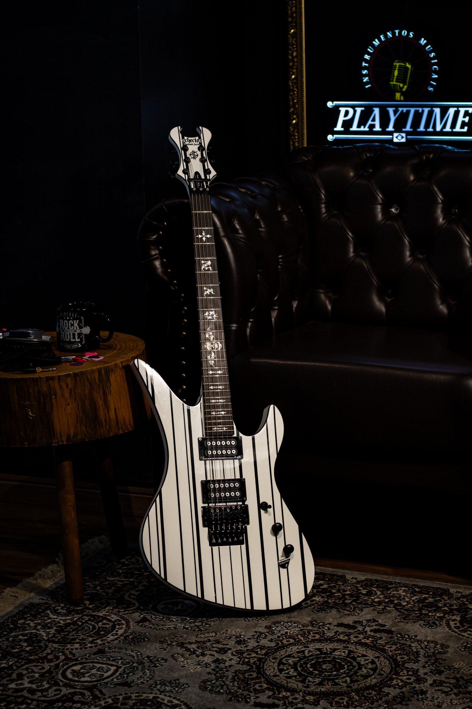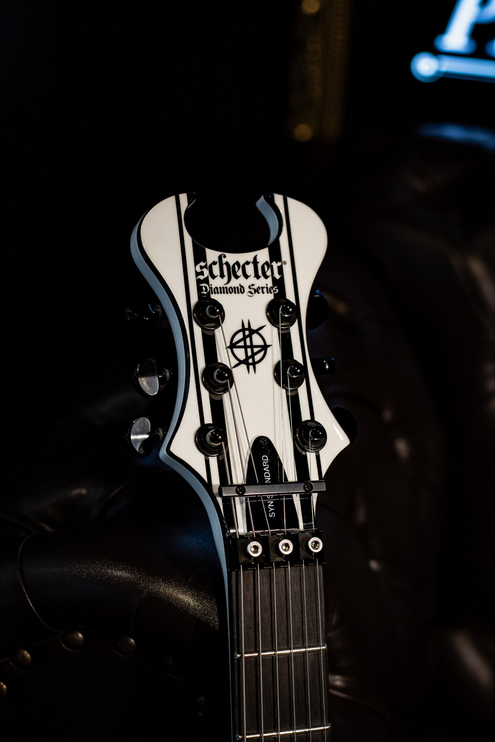 A Guitarra Schecter Synyster Standard é um modelo de assinatura do guitarrista Synyster Gates, da banda de metal Avenged Sevenfold. Com corpo de mogno, braço em construção “set neck” e escala de ébano, ela oferece excelente jogabilidade. Os captadores Schecter Diamond Synyster Gates Signature Humbucker proporcionam tons poderosos. Além disso, a ponte Floyd Rose Special ‘Hot Rod’ permite controle preciso de afinação e estabilidade