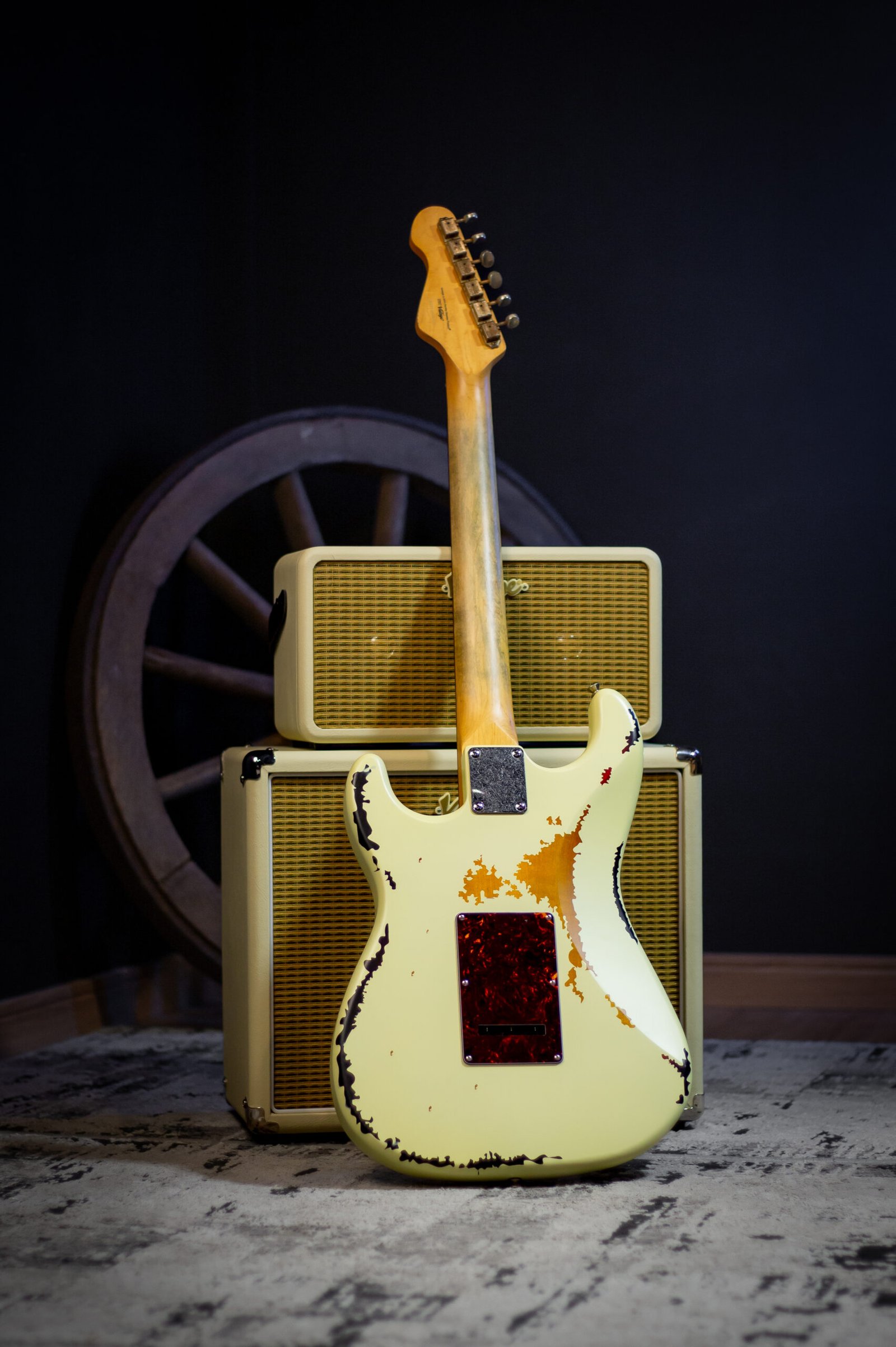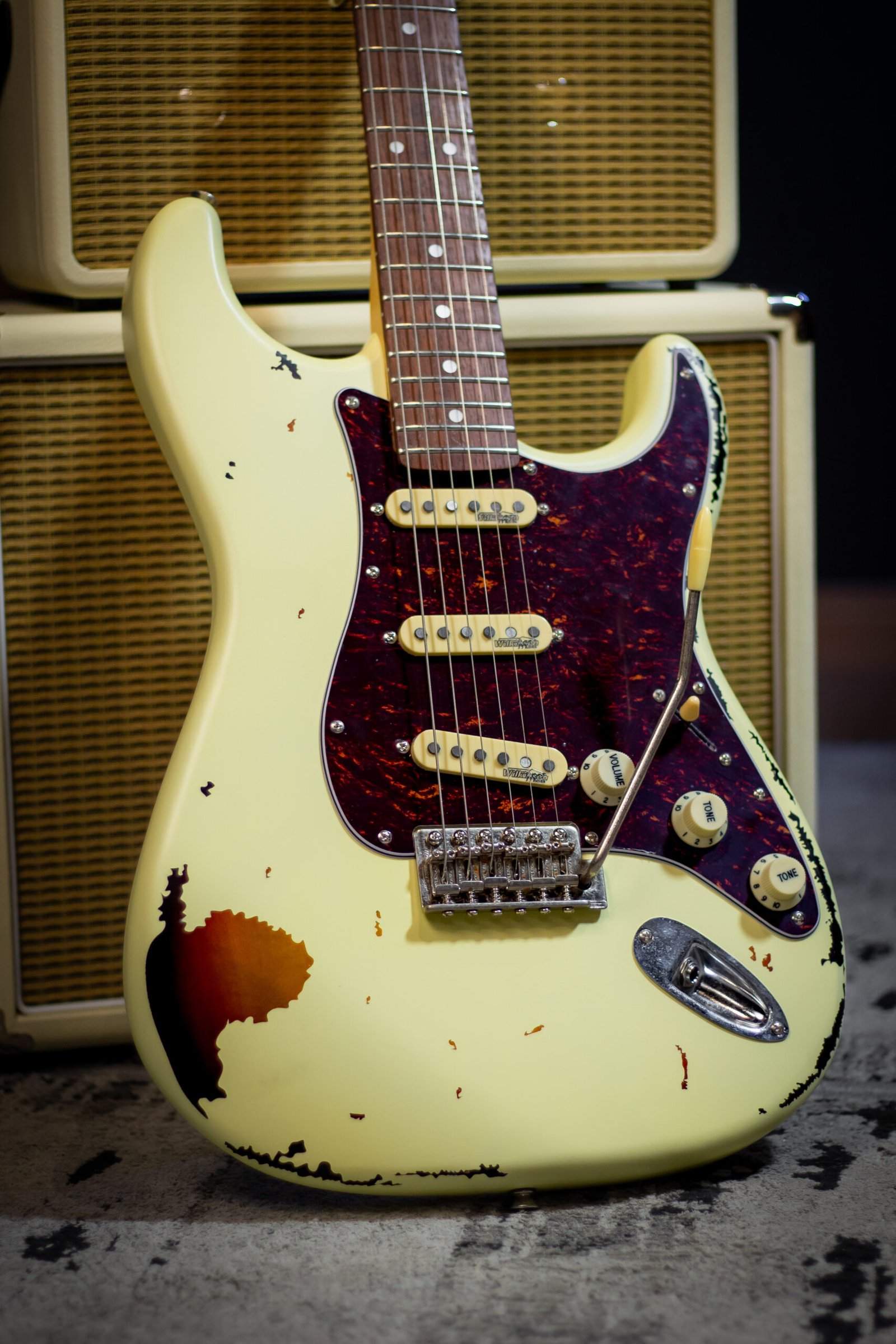 Vintage Icon V6MRVW STR – Destressed White On Sunburst