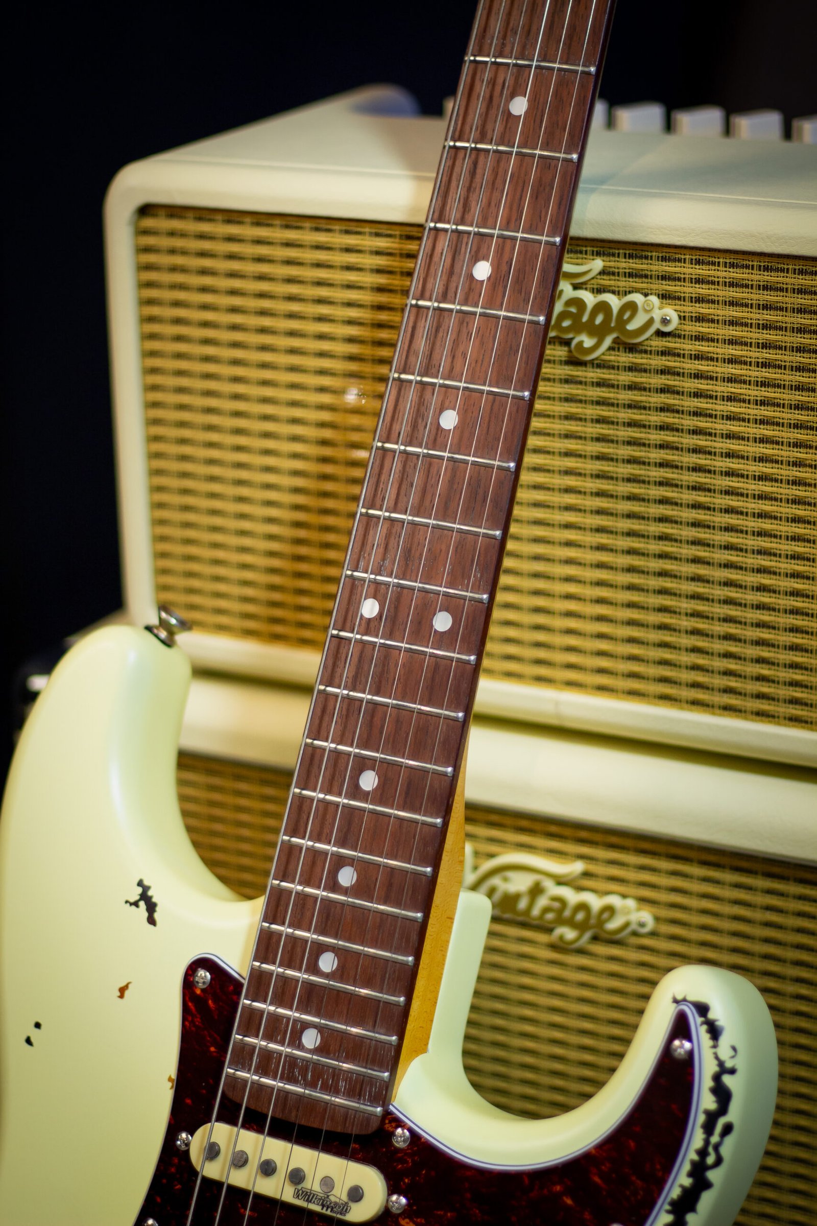 A V6MR tem a aparência de uma velha guitarra de guerra, mas vem equipada com alguns detalhes modernos. Um trio de captadores Wilkinson WVS Alnico V com timbre vintage proporciona à guitarra o equilíbrio perfeito entre agudos estridentes, médios ricos e graves encorpados. A ponte vibrato Wilkinson, por sua vez, apresenta um bloco com furos escalonados que melhora radicalmente a entonação da guitarra, mantendo uma incrível precisão de retorno à afinação original.